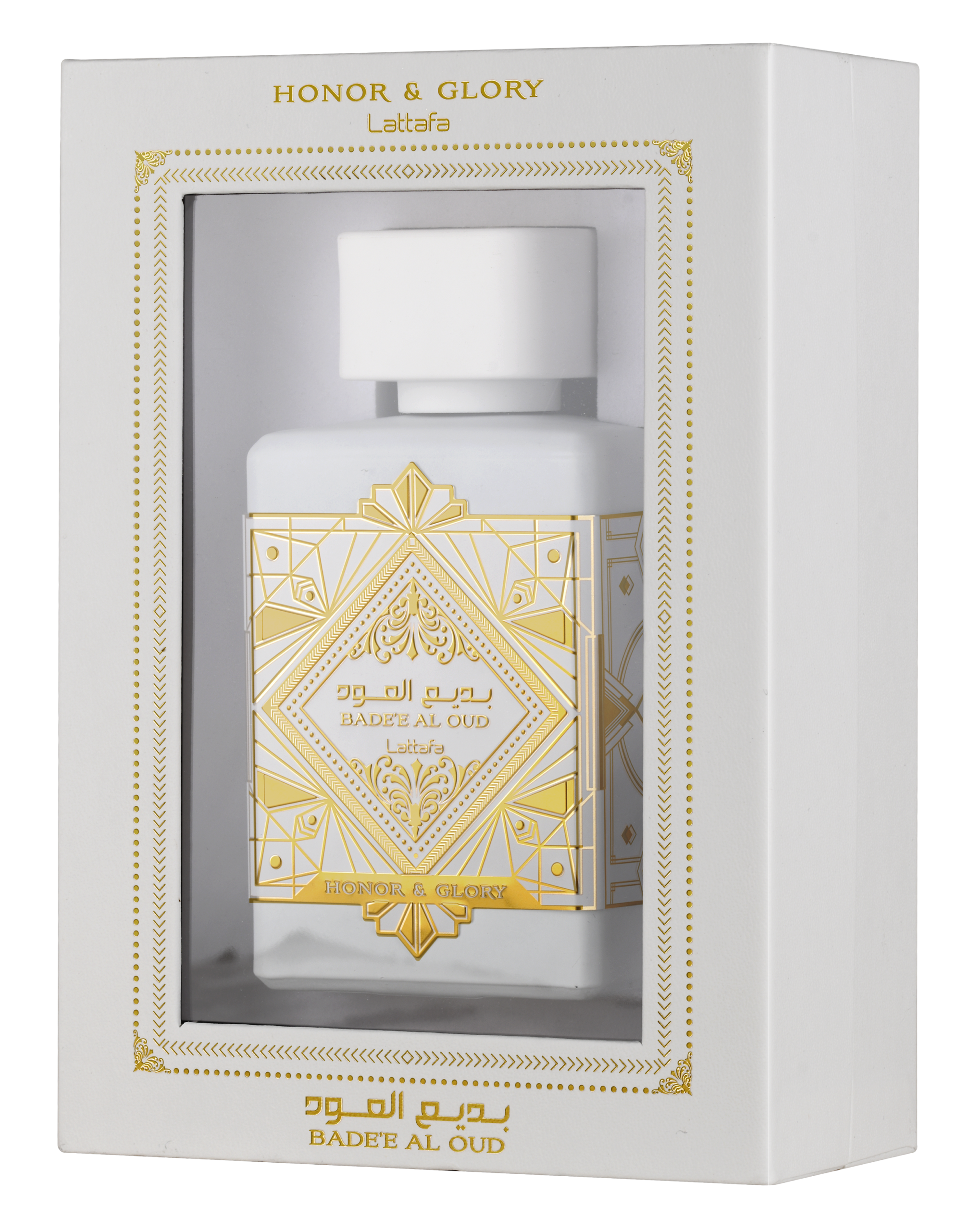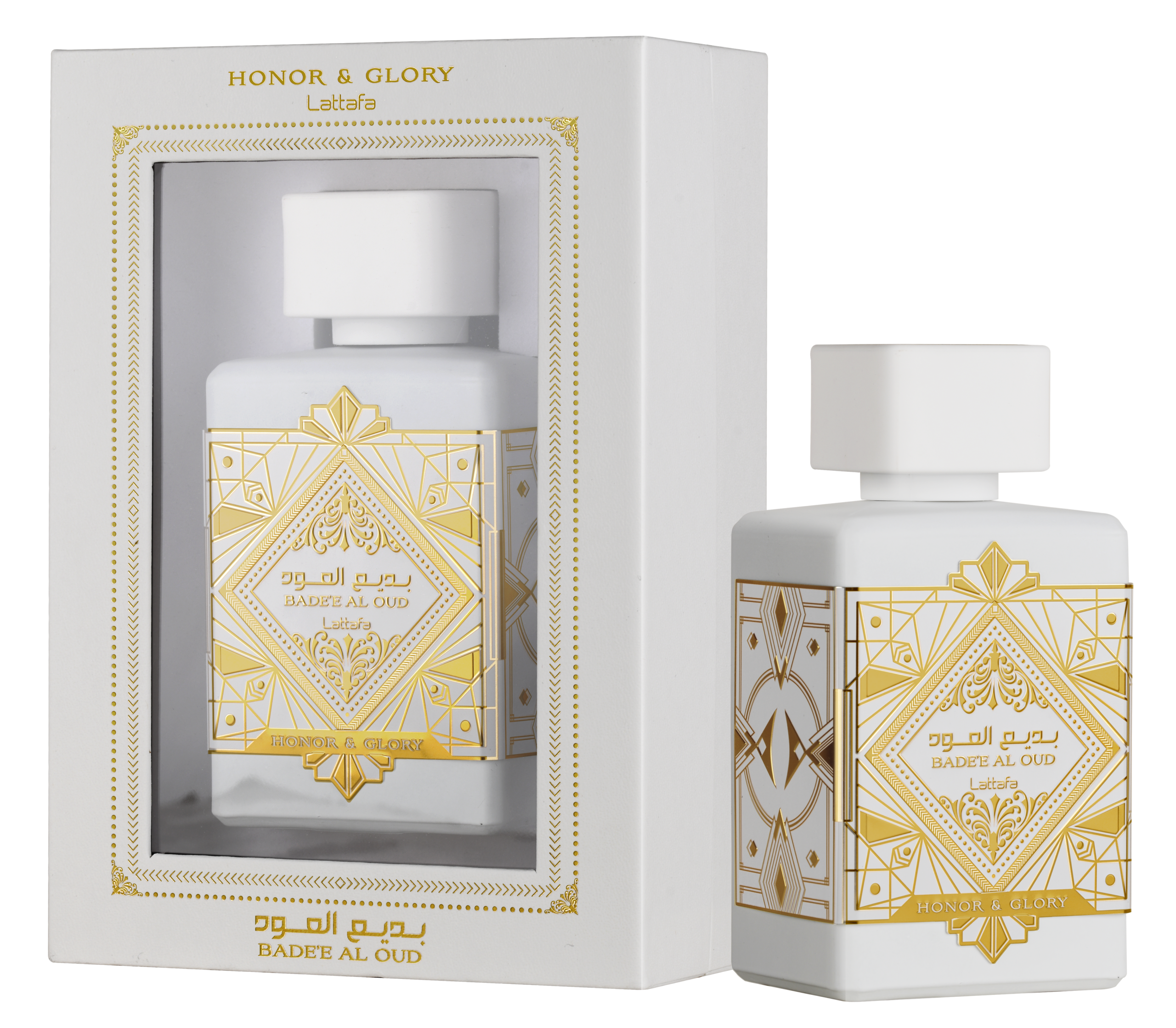 عطر بديع العود هونور آند غلوري من لطافة هو عطر مخصص للنساء والرجال، وقد تم إطلاقه في عام 2023. تتكون نوتاته العليا من الأناناس وكريم بروليه، بينما النوتات الوسطى تضم القرفة، الكركم، الفلفل الأسود، واللبان البنزوين، أما النوتات القاعدية فتجمع بين الفانيليا، خشب الصندل، الكشميران، والطحلب.